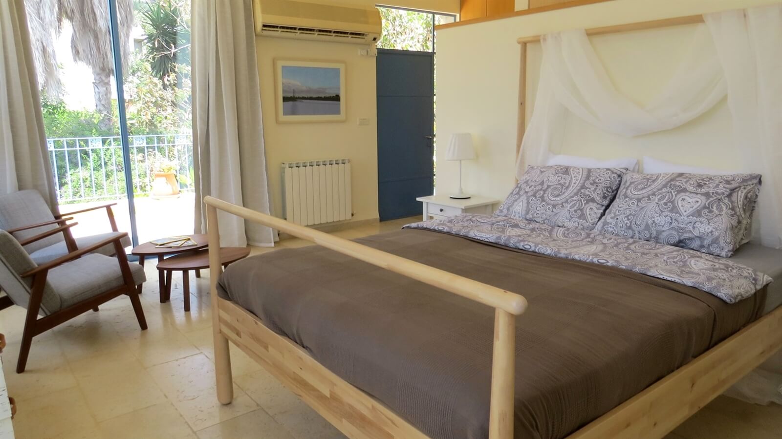 - מיטה זוגית, פינת ישיבה עם שולחנות קפה