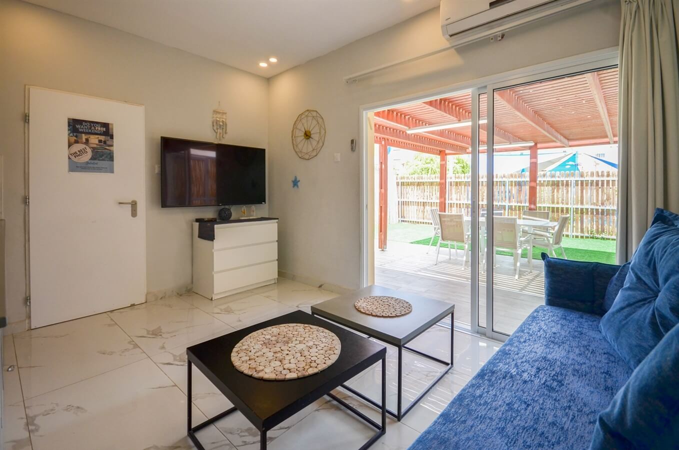 דירת אירוח מעוצבת המיועדת לעד 4 אורחים ובה תיהנו מחדר שינה עם מיטה זוגית, ספה נפתחת, גינה גדולה עם פינת ישיבה, מכונת אספרסו, WIFI, חדר רחצה עם מגבות ומוצרי אמבט, פינת ישיבה, טלוויזיה בחיבור לערוצי כבלים, מיזוג אוויר, מטבחון עם מקרר, תנור, טוסטר, מיקרו, כירה חשמלית וכלי בישול.