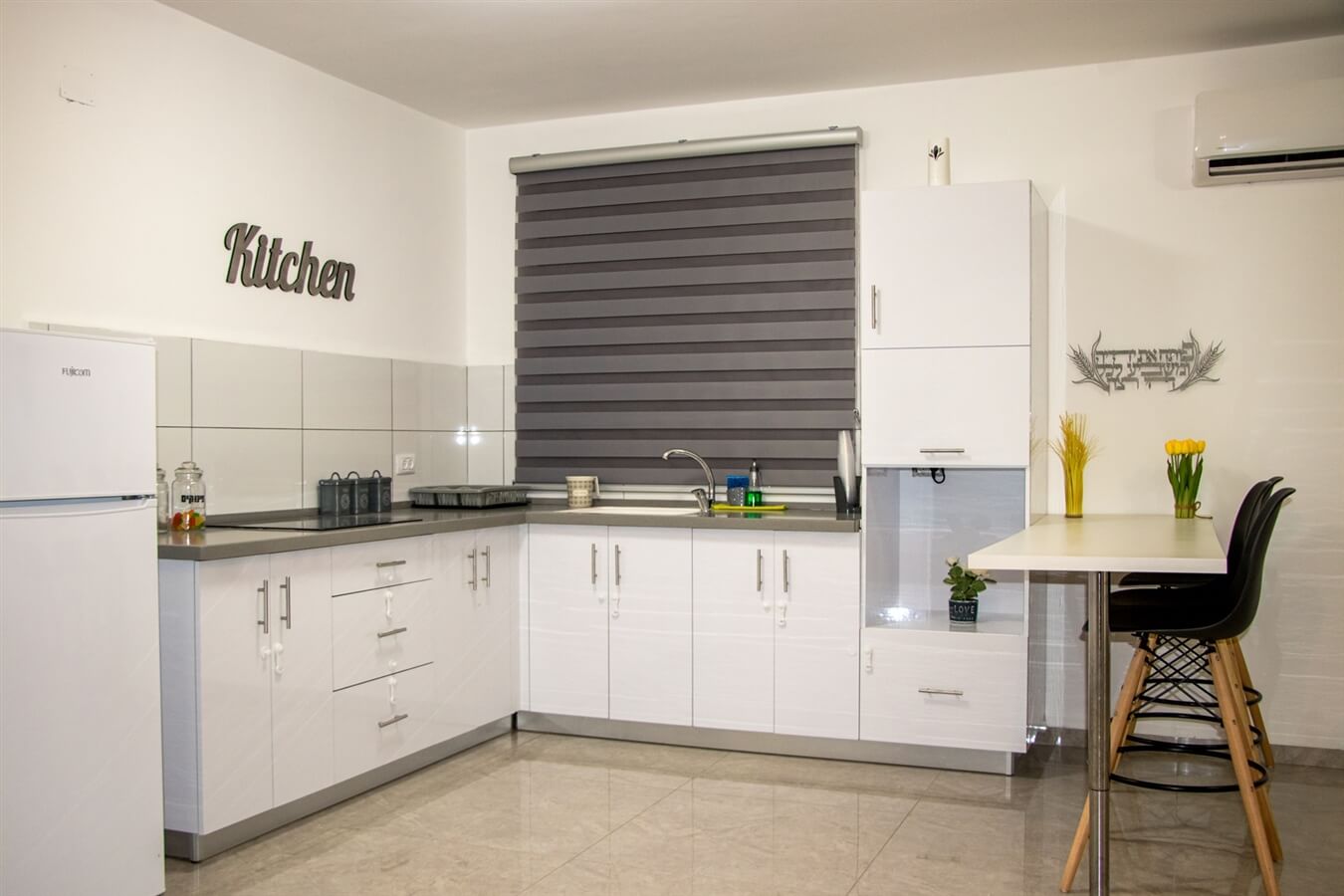 - מטבח גדול ומאובזר עם פינת קפה, קומקום, מיקרוגל, כיריים חשמליות, מקרר וכלי מטבח