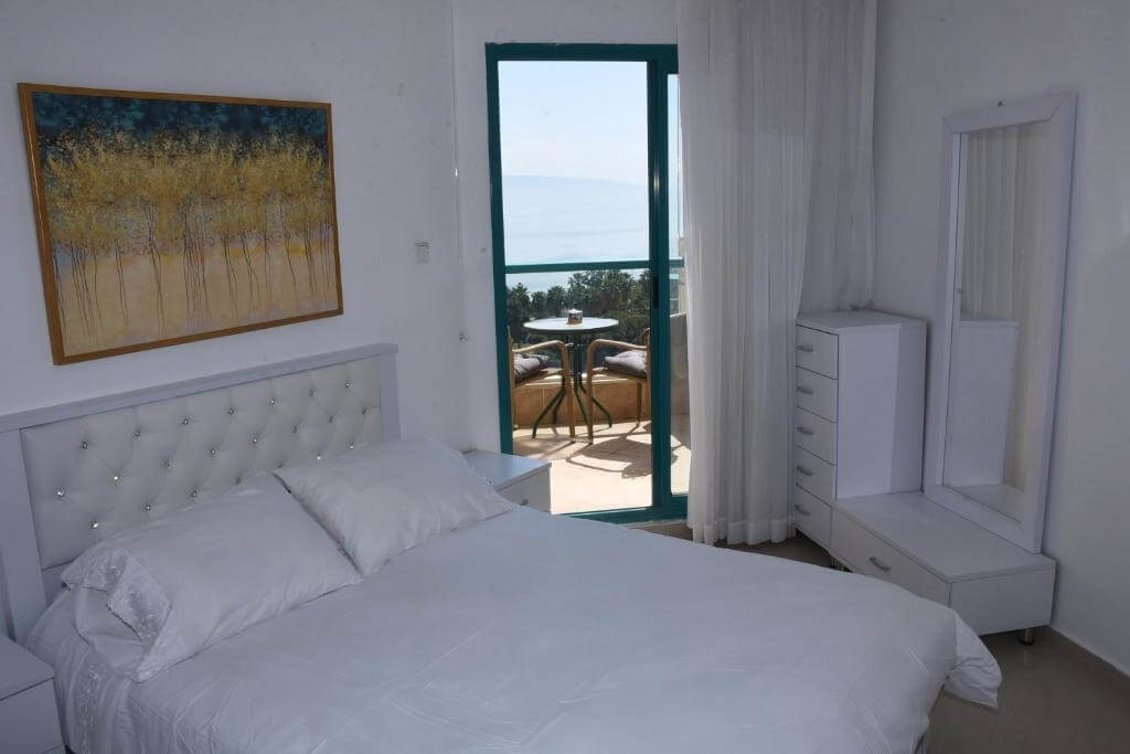 - חדר השינה מוביל אל מרפסת נוף קסומה עם פינת ישיבה המשקיפה לצידה הצפוני של הכנרת