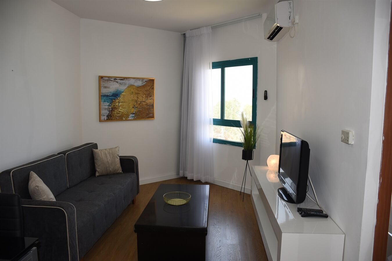- סלון הכולל ספת ישיבה ומסך טלוייזה בחיבור למגוון ערוצים בכבלים