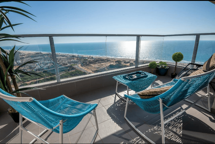 - מרפסת מדהימה עם פינות ישיבה ונוף מדהים לטיילת ולים התיכון