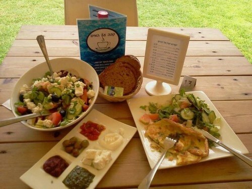 כמו כן, פועל בבריכה בית קפה "קפה על המים" המציג תפריט מגוון בארוחות קלות ומרעננות.