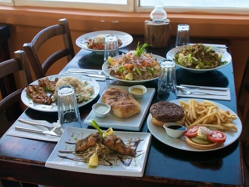 צהריים מלאה, ארוחות קלות של גבינות ודגים ועד ארוחות דשנות של המבורגרים, קציצות ופסטות מגוונות.