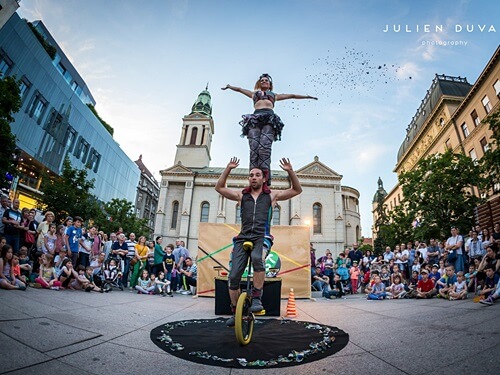 קרקס און אוף – מופע קרקסי מלא הומור ואינטרקציות עם הקהל בשילוב הליכה על חבל רפוי, ג'אגלינג ואקרובטיקה.