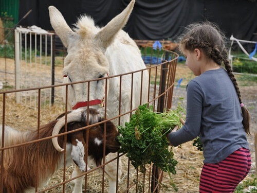 - פינת חי להאכלת עיזים ננסיות וחמורים מהחווה השיקומית שלנו לבעלי החיים