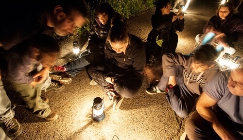 הרפתקאה לילית לאור עששיות. בלילה החושים מתחדדים, העיניים נפתחות, אנחנו יותרסקרנים, קשובים ואפילו קצת מפוחדים.