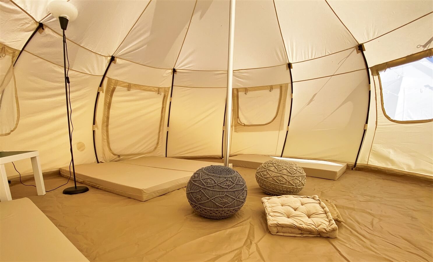 במתחם 10 אוהלים ייחודיים המתאימים לאירוח משפחות, קבוצות, ימי גיבוש, מסיבות/אירועים. כל אוהל מתפרס על 20 מ"ר ומתאים ללינה עד 6 אורחים. כל אוהל כולל: מזרנים, מיזוג אוויר, תאורה, נקודות חשמל, ואינטרנט אלחוטי.