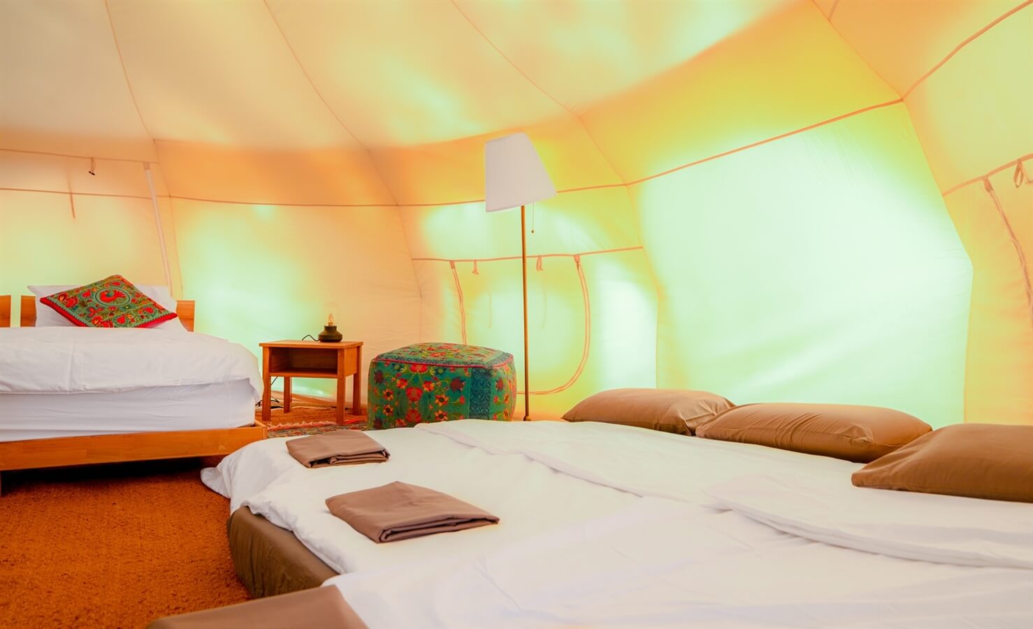 האוהלים שלנו מספקים הרגשה בהשראת הטבע, תוך שימוש בחומרים טבעיים בתפירה, ריהוט וטקסטיל.