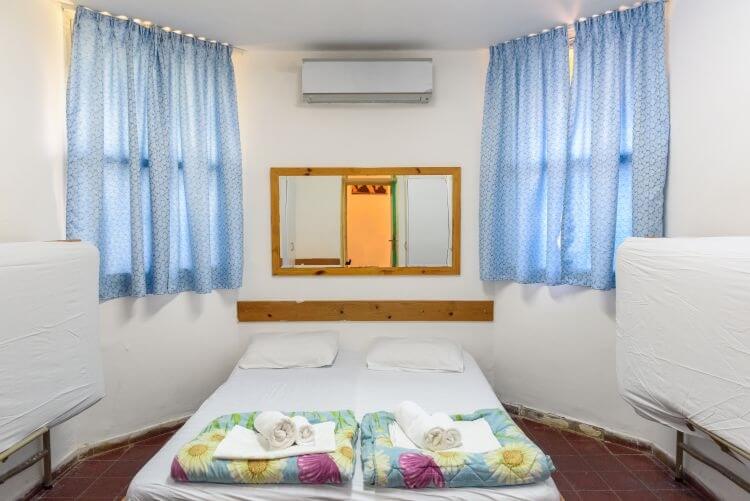 - 15 חדרי אירוח באגף המרכזי של בית הארחה, מתאים לאירוח עד 6 נפשות. בחדר יש 3 מיטות קומותיים.