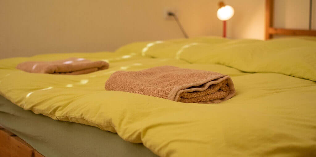הלינה על מזרן עם סדין נקי וכרית עם ציפית נקייה. יש להביא שק שינה, מגבת ובגד רחצה לג'קוזי.