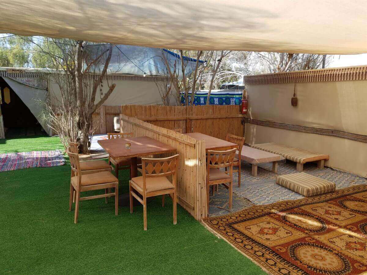 מחוץ לאוהלים תמצאו: מקלחות, שירותים, מטבח מאובזר, שלל פינות ישיבה וזולה, בריכה משותפת למתחם ועמדות מנגל.