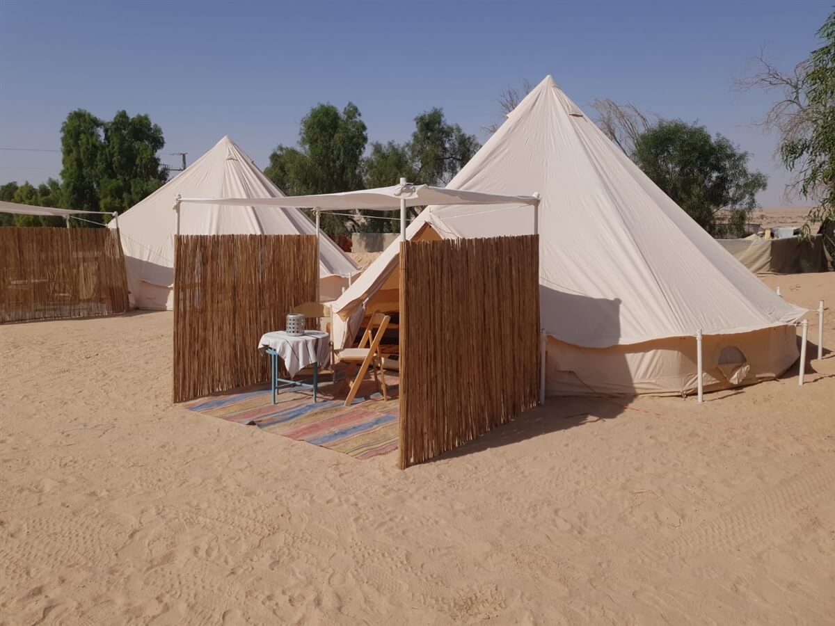 4 אוהלי גלמפינג: 3 מתאימים לאירוח של עד 8 איש ואוהל נוסף לאירוח עד 6 איש, האוהלים כוללים גם פינת ישיבה חיצונית פרטית.