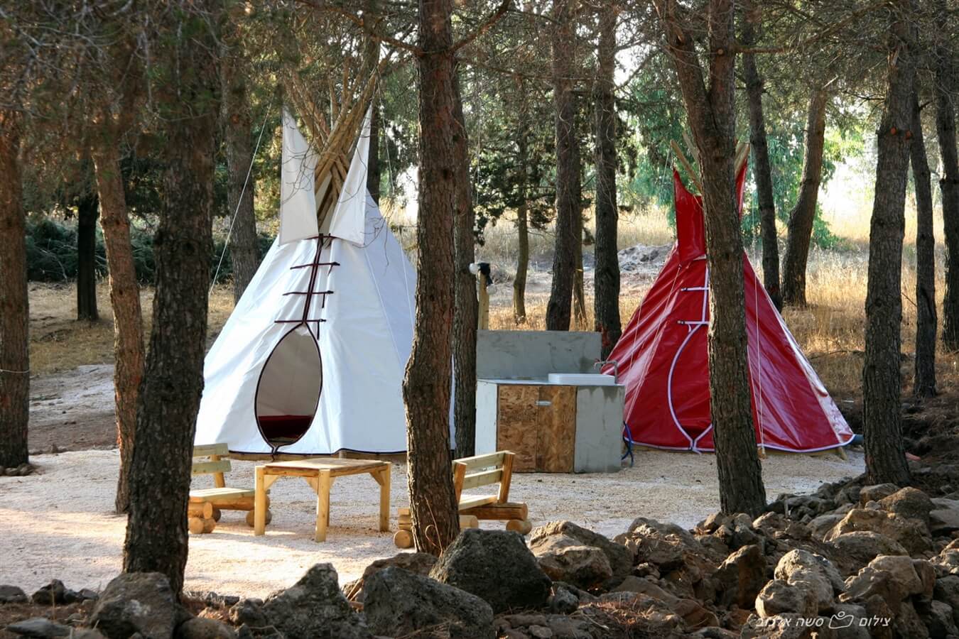 וזה עדיין לא נגמר... אז מה מחוץ לאוהלים?- חצר פרטית לכל אוהל ובה שולחן וספסלים, ערסלים, מקום להדלקת מדורה וגריל