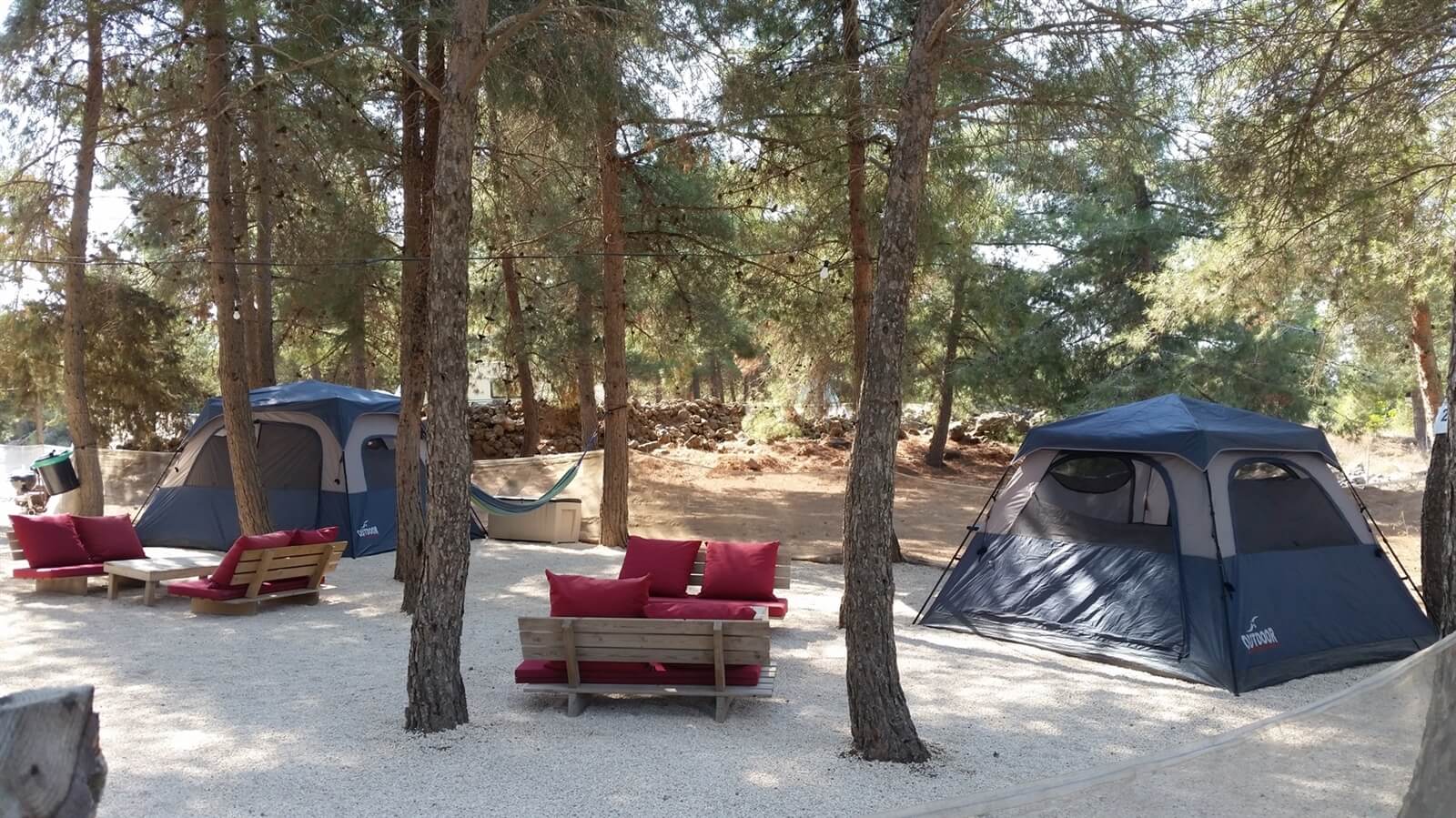 כל אוהל נהנה משטח פרטי הכולל חצר עם ערסלים, גריל, ספסלים ומקום ייעודי להדלקת מדורה.