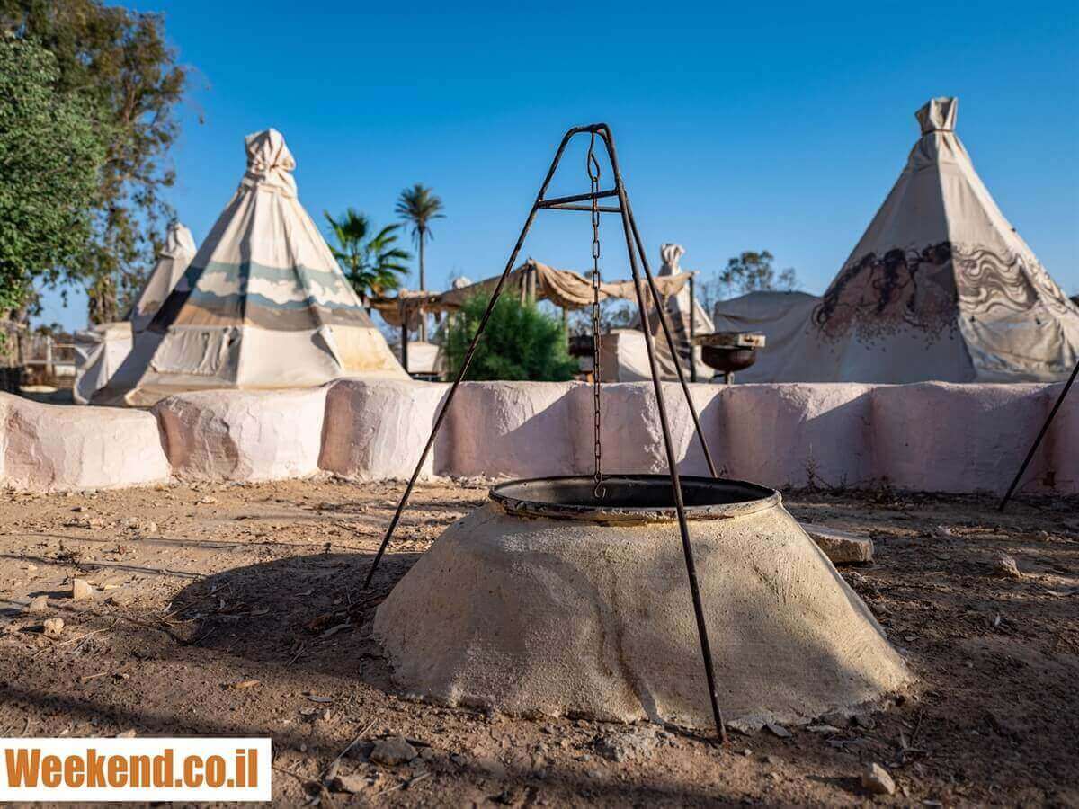 אוהלי טיפי אינדיאנים - כל אחד מהאוהלים מיועד לאירוח עד 6 איש וכולל: מזרונים ללינה, משקעי חשמל, מזגן ותאורה. סמוך לאוהלים ישנם מתחם פוייקה, מדורה, שירותים ומקלחות עם מים חמים.