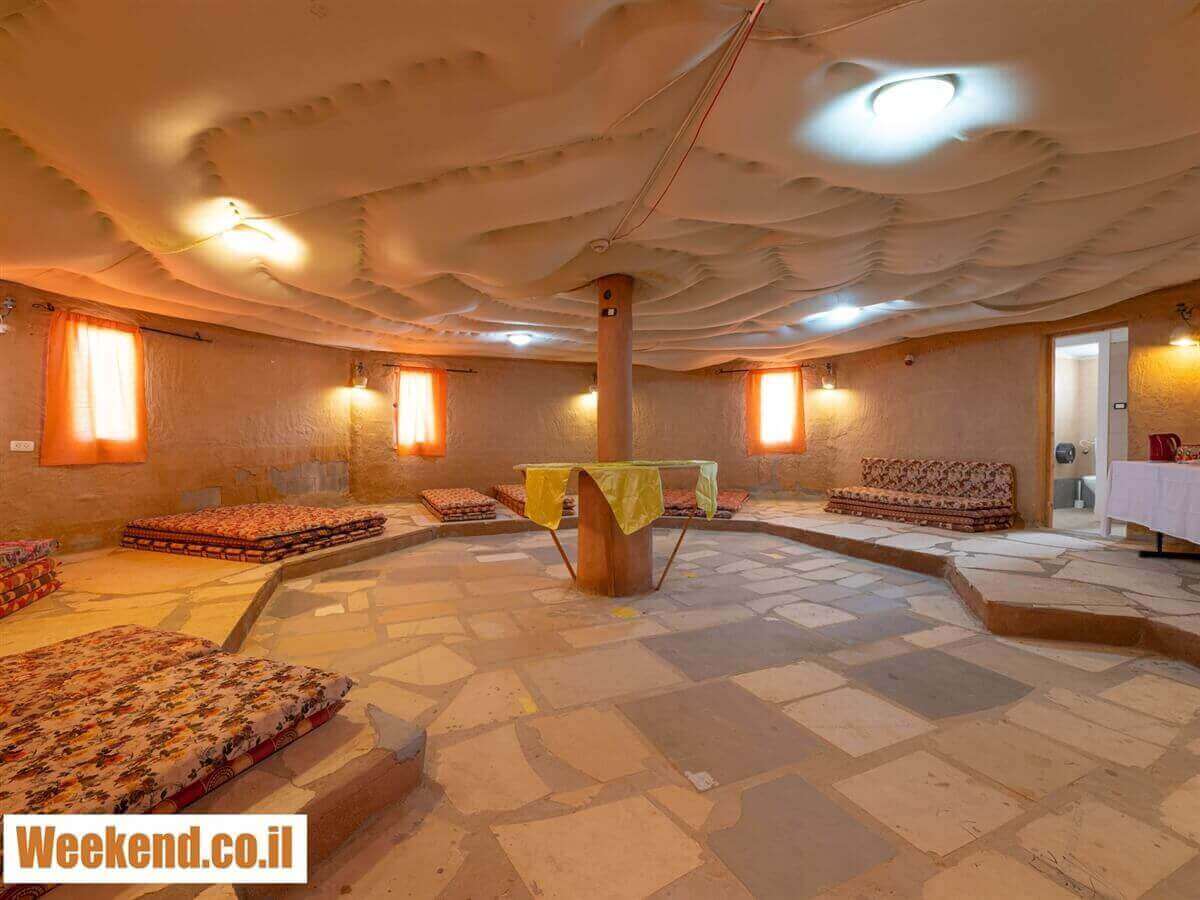 לינה בחאן העגול - חוויית לינה מיוחדת במינה בחאן אקולוגי עגול המתאים ללינת 20 איש על גבי מזרנים. החאן מבודד ומתאים לקבוצות מטיילים וג'יפאיים עם מקום פרטי למדורה, 2 חדרי שירותים ו-2 מקלחות, שולחן אוכל פרטי גדול, מקרר, פינת קפה ועוד. חוויה בדואית משודרגת!