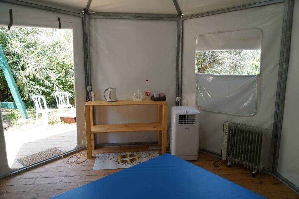 אוהלים זוגיים המתאימים ללינת 4 איש עם מיטה זוגית, מיזוג אוויר ופינת קפה ותה.