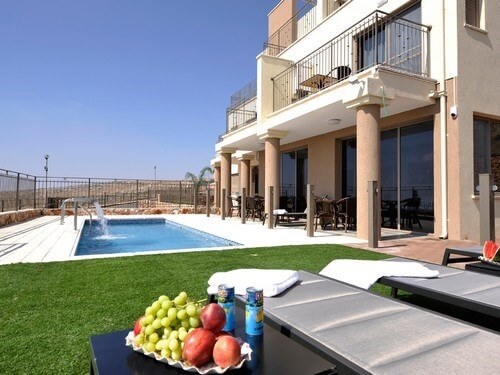 באחוזת אוהד ארבע סוויטות זוגיות וארבע סוויטות משפחתיות, לובי מעוצב ומרווח, בריכה, גינה מטופחת עפ םינות ישיבה, פינת ברבקיו ונוף עוצר נשימה של הכנרת.