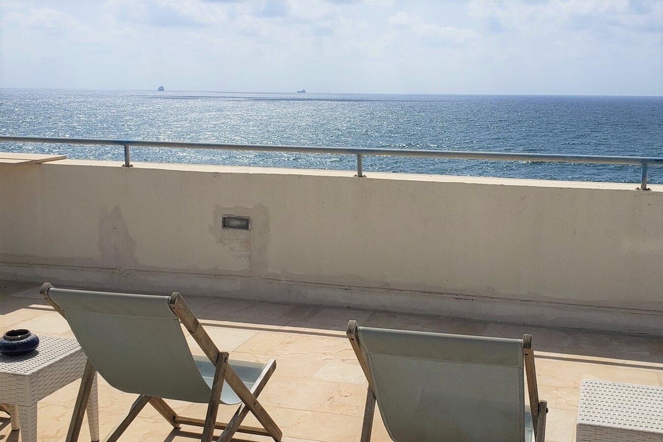- יציאה למרפסת השקיפה לסמטה ולים הכחול