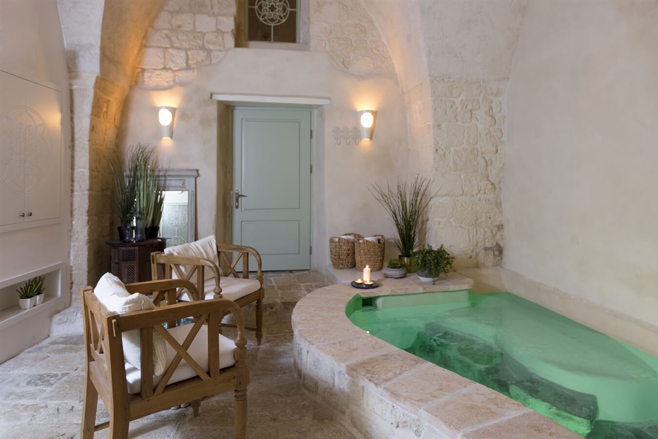 - חלל רחצה פתוח בו: מפל מים מאבן, אמבטיה