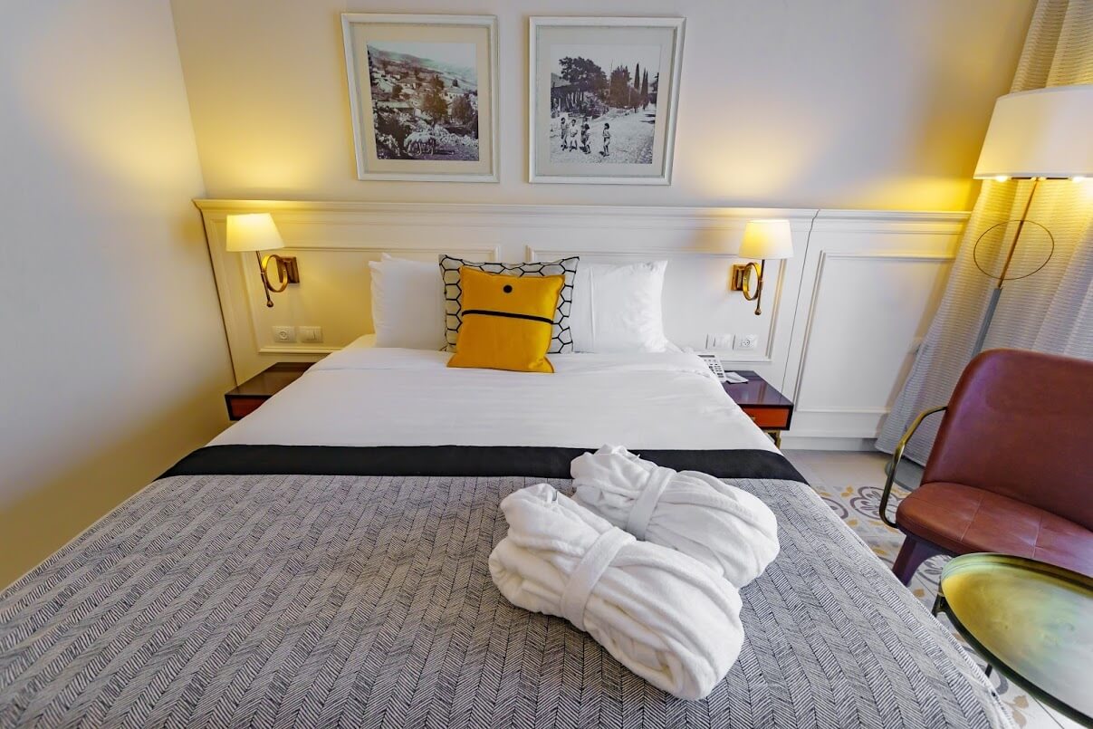 מיטה זוגית נוחה ומרווחת, טלוויזיה עם חיבור לערוצי כבלים, מטבחון עם מיני-בר ופינת קפה מאובזרת, חדר רחצה מושקע עם שירותים, מקלחת, מייבש שיער, מגבות וסבונים, ארון בגדים עם כספת ושולחן כתיבה.