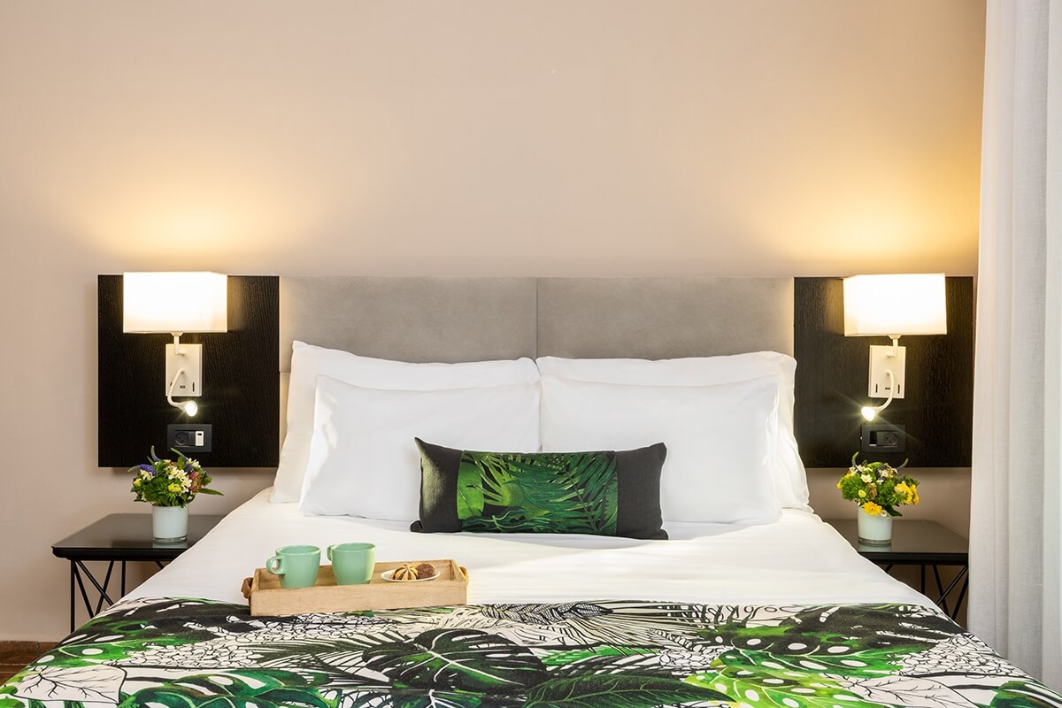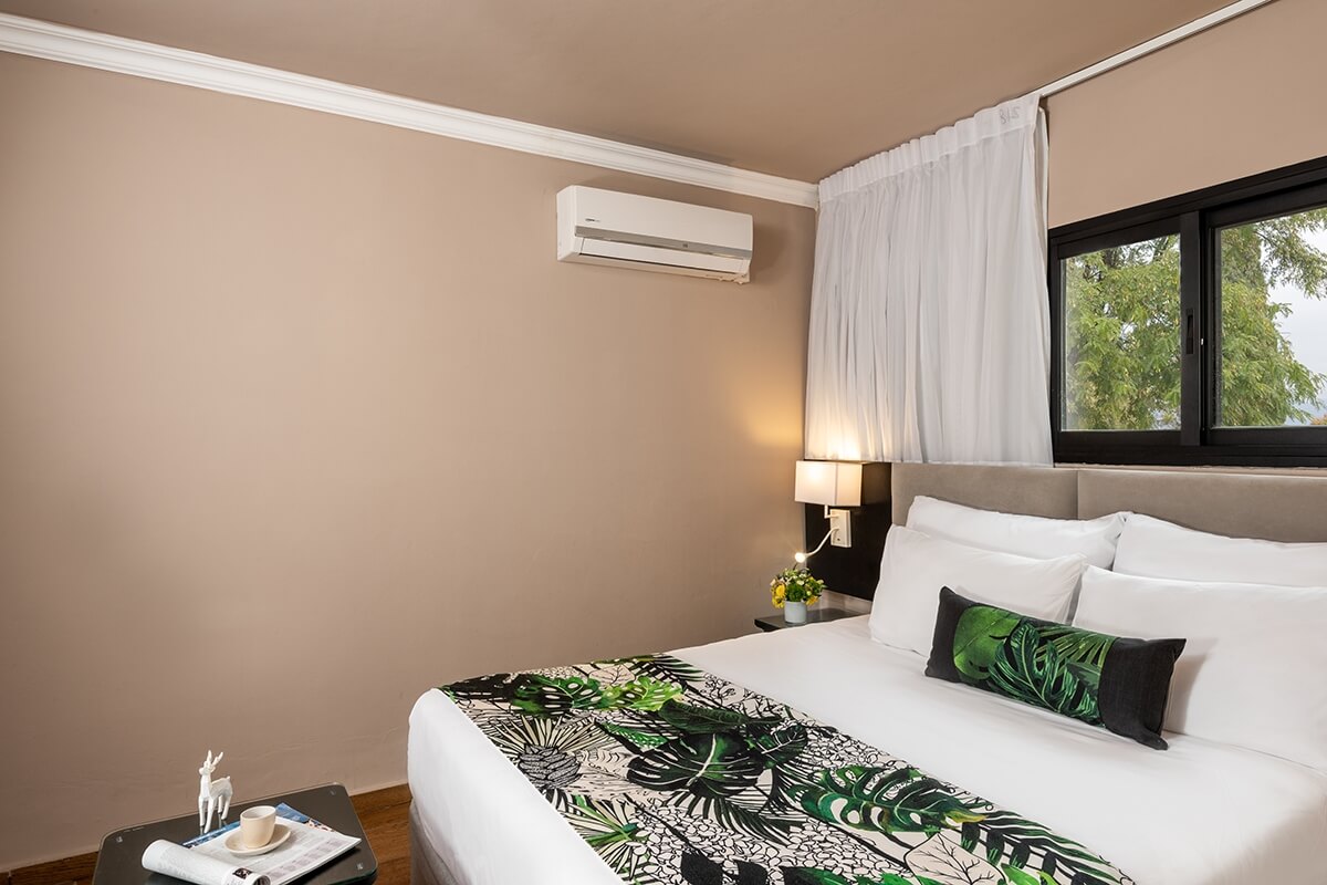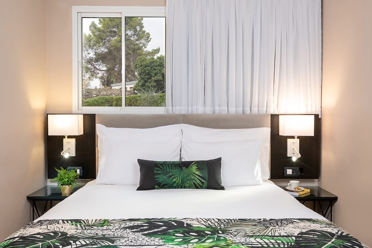 במלון תמצאו 53 חדרי שינה מרווחים עם יציאה לגינה (בכל חדר) המתאימים לזוגות ומשפחות וכוללים: