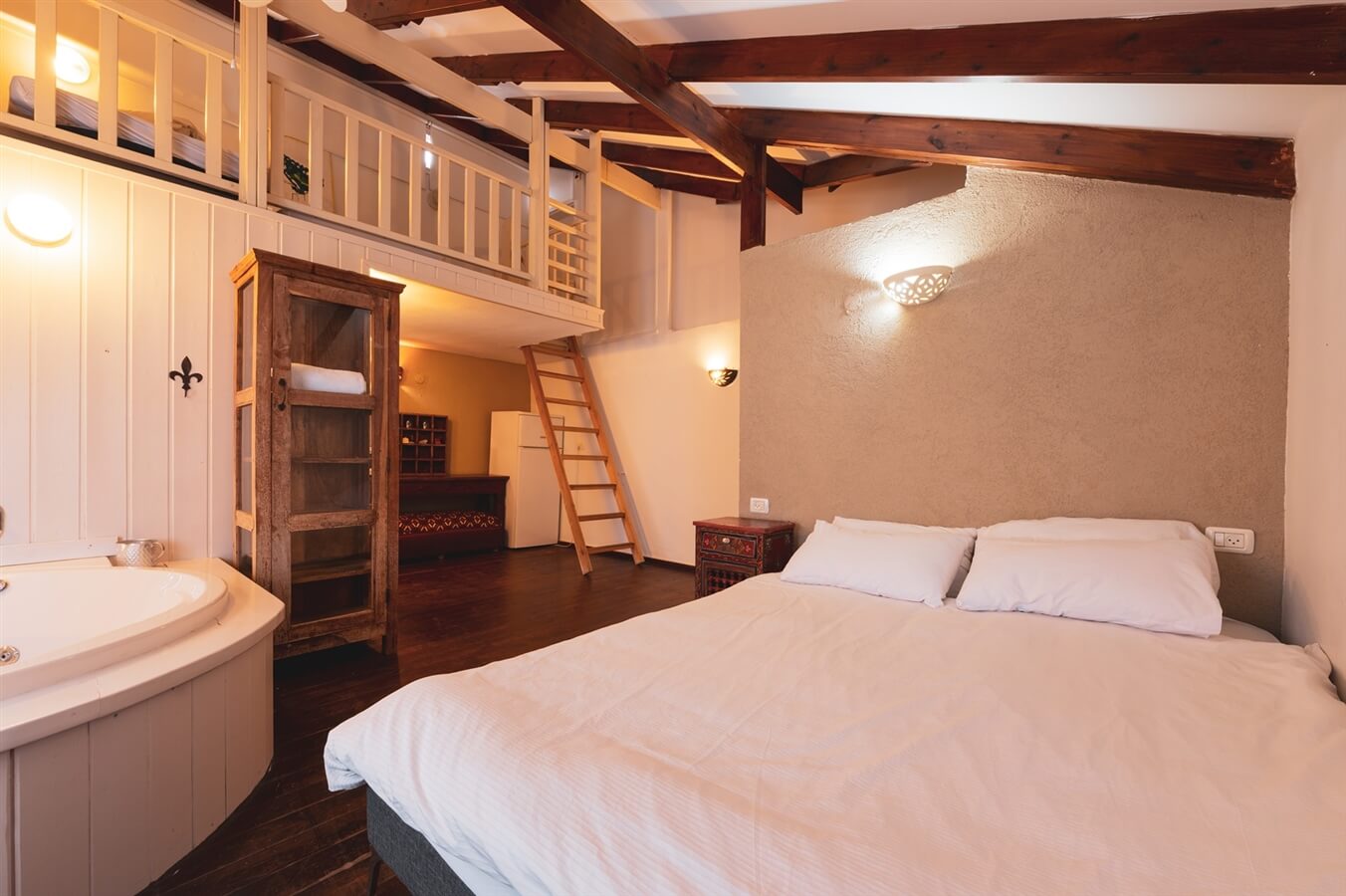 סוויטה משפחתית המתאימה לאירוח משפחה של עד 4 נפשות. הסוויטה נמצאת בקומה הראשונה, כוללת מיטה זוגית גדולה ונוחה, ספה נפתחת ללינת שני ילדים, ג’קוזי גדול ומפנק, ומטבחון מאובזר עם מקרר, מיקרוגל וכלי אוכל.