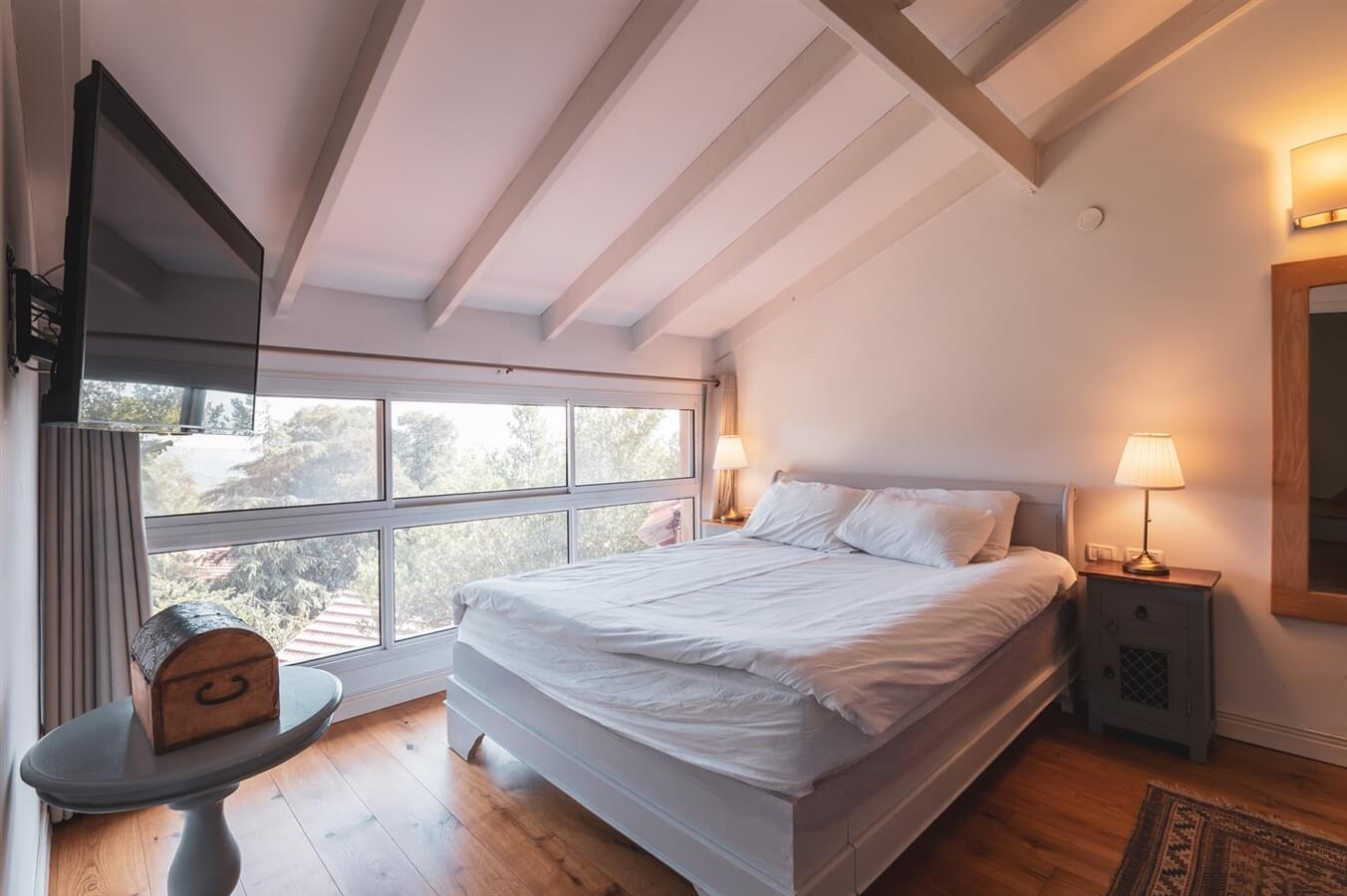 - חדר שינה עם מיטה זוגית רחבה