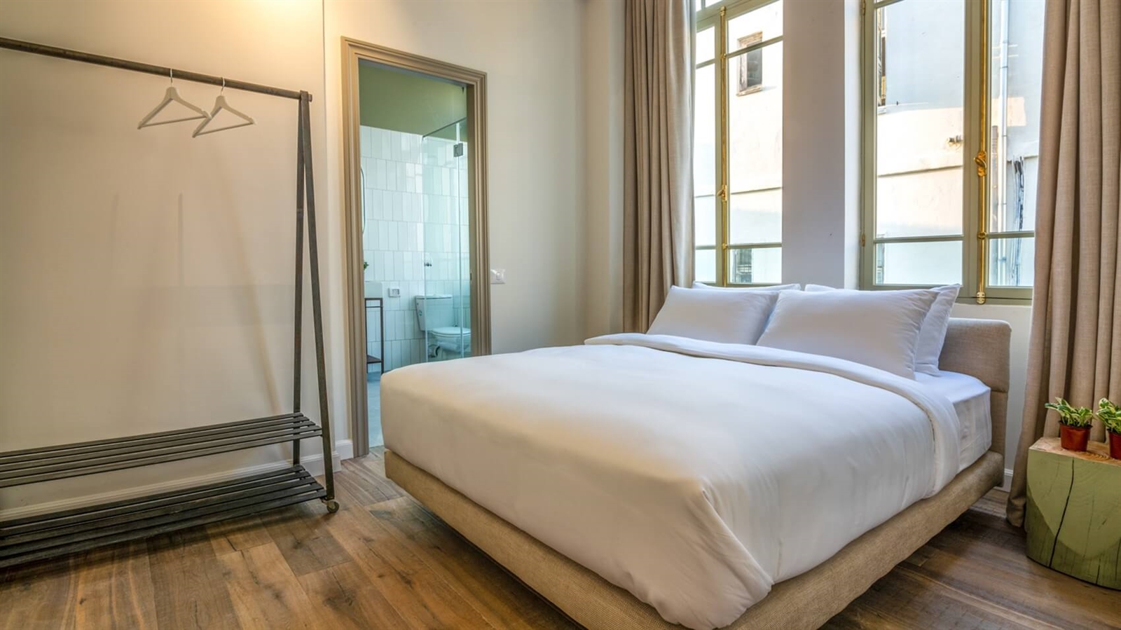 חדרים מרווחים ונעימים, בהם תיהנו ממיטת KING SIZE מפנקת במיוחד וכן חדר רחצה מטופח, חיבור לאינטרנט אלחוטי ומסך טלוויזיה עם NETFLIX. בחלק מהחדרים גם מרפסת פרטית הצופה לעיר.