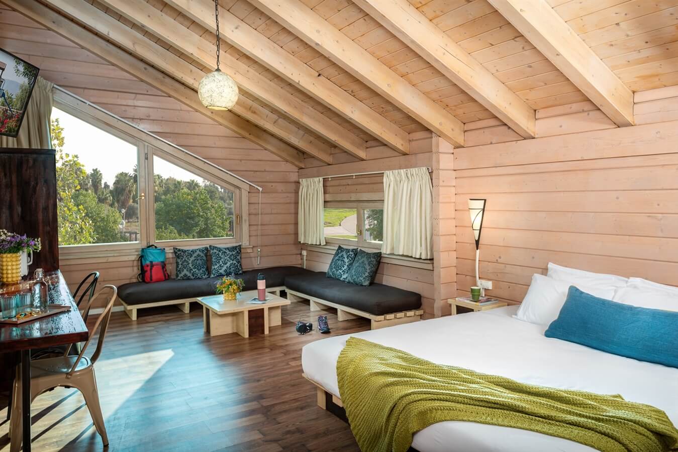 בקתות בעיצוב Open Space המחולקות לחדר שינה וסלון וצמודות קרקע