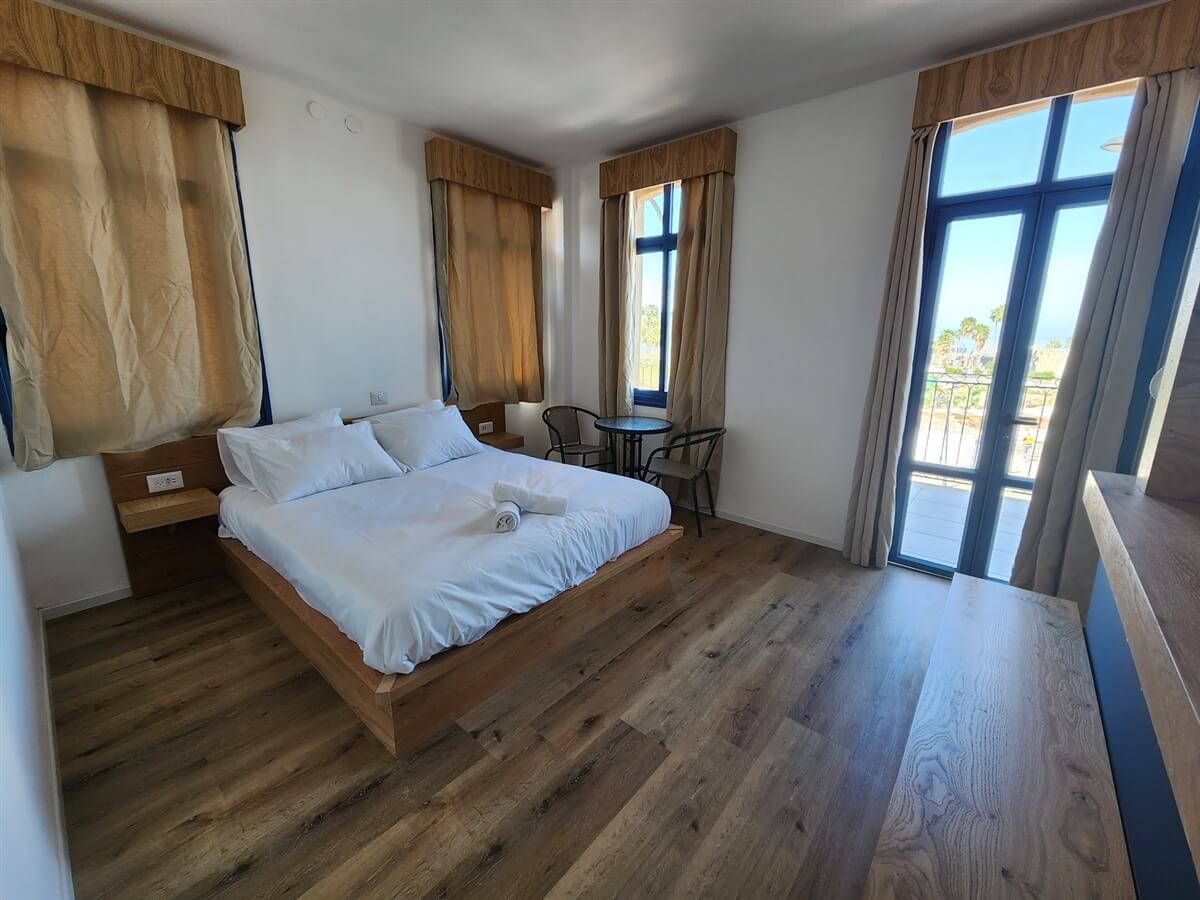 - סוויטת 2 חדרים: 4 חדרים מסוג זה, חדר בגודל 40 מר', מתאים לאירוח עד 8 איש, בחדר תמצאו חדר שינה עם 3 מיטות יחיד, סלון עם מיטה זוגית נוחה, מרפסת פרטית, פינת קפה, מקרר, ארון בגדים, חדר רחצה עם תחליבים ומגבות, פינת ישיבה, טלוויזיה חכמה בחיבור לכבלים ונטפליקס, כספת ופן.