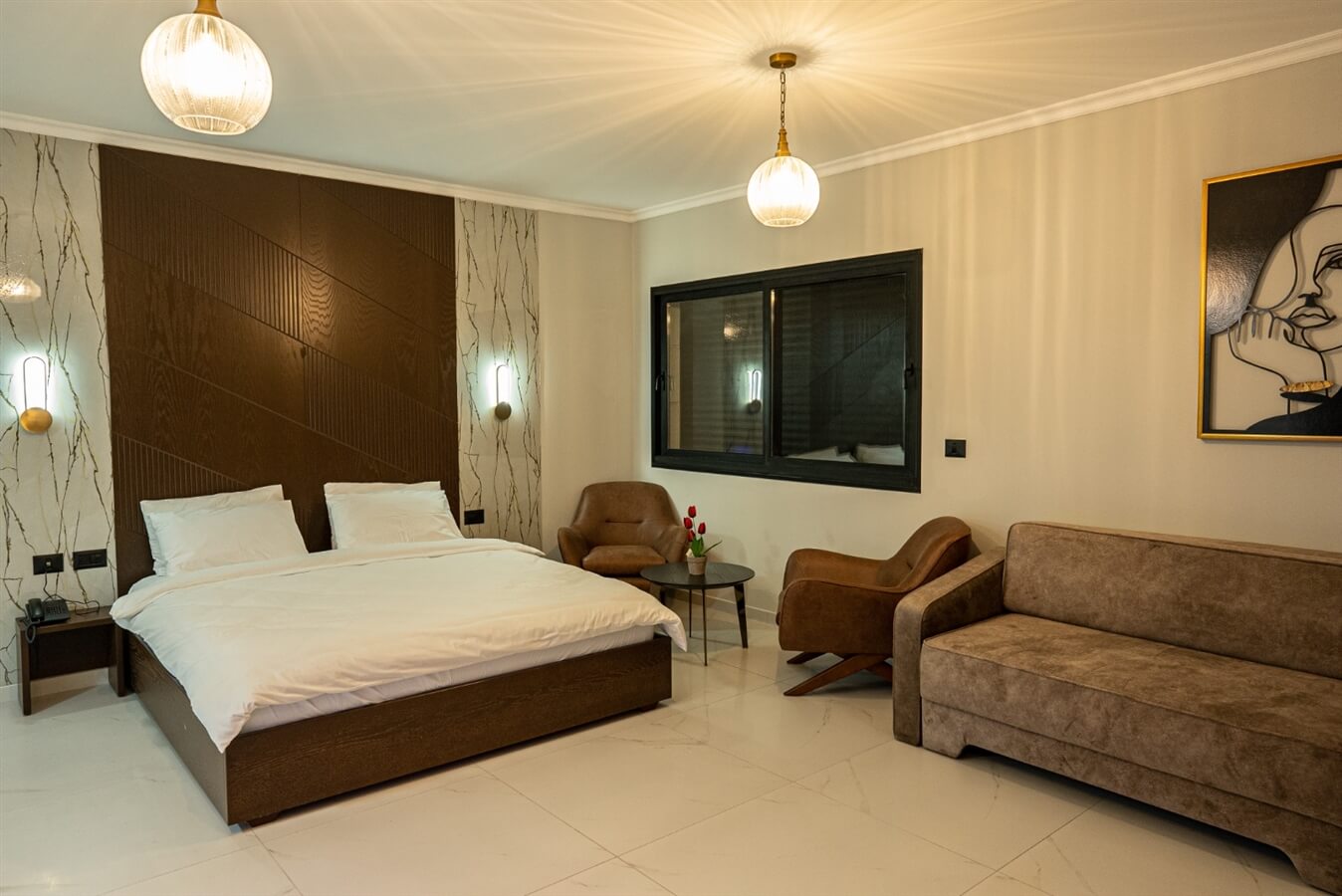 - סוויטת בוטיק (2 יחידות מסוג זה): 36 מר', לאירוח זוג + 3, מיטה זוגית נוחה, ספה הנפתחת למיטה זוגית, טלוויזיה חכמה + נטפליקס וכבלים, מטבחון עם מיני בר ופינת קפה, חדר רחצה מעוצב (נגיש לנכים) עם מייבש שיער, מגבות ותחליבי רחצה (נגיש לנכים).