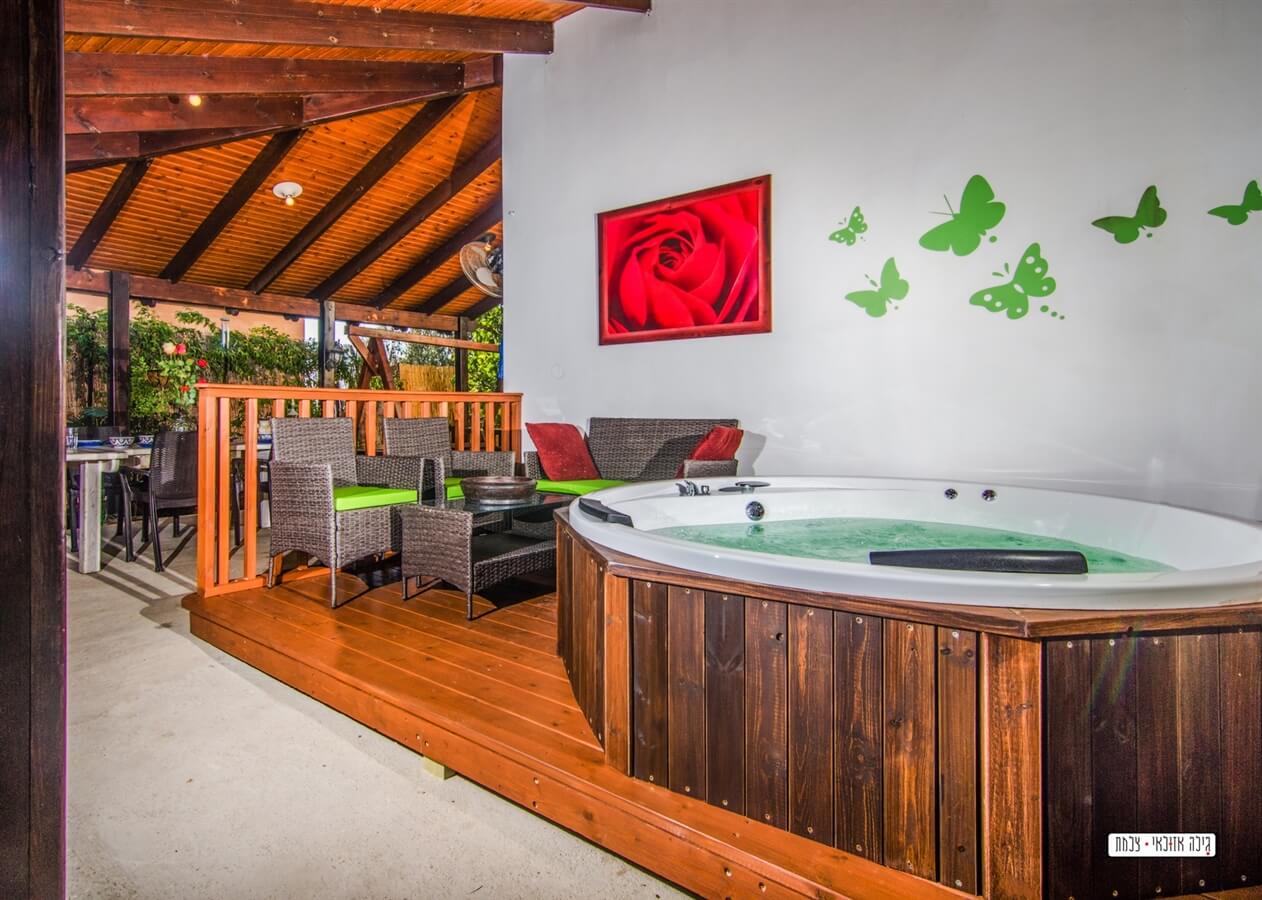 וילת הנופש כפרית במיוחד ומתאימה לעד 15 איש. לוילה חצר גדולה ורחבת ידיים בה ניתן ליהנות מנדנדות, ערסלים, פינת ישיבה בחוץ ופינת מנגל איכותית.