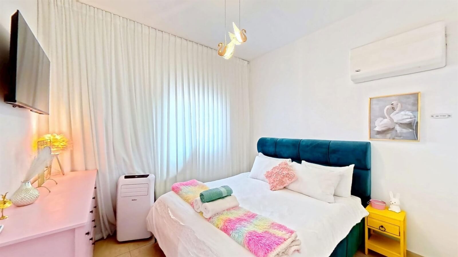 - חדר עם מיטה זוגית, שידה וטלוויזיה חכמה