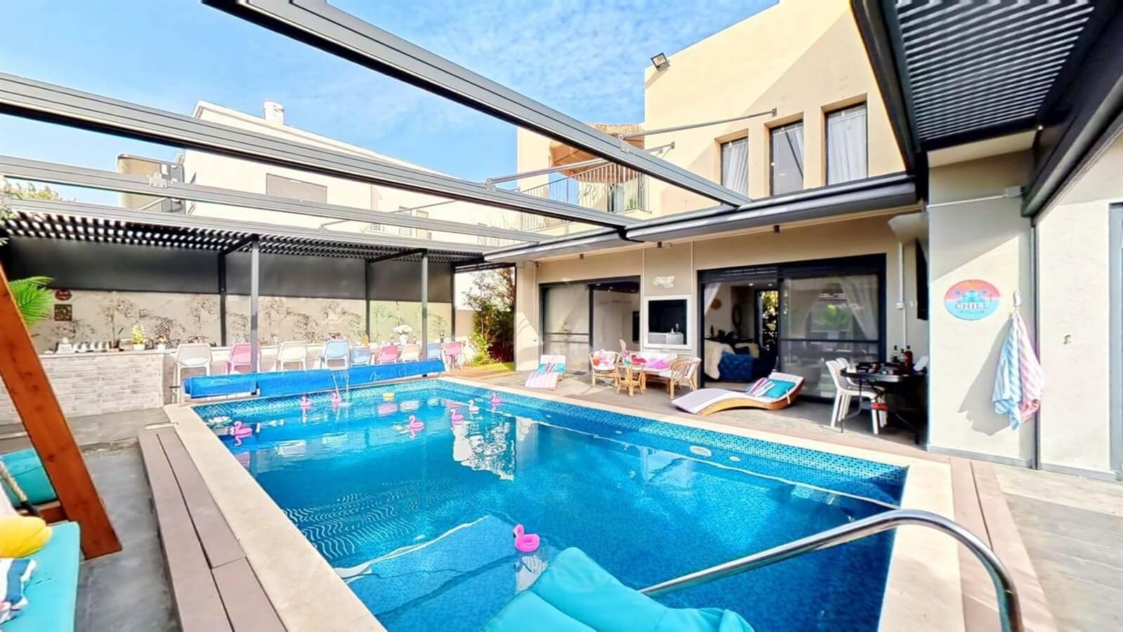 צ’יל וילה היא חוויית אירוח יוקרתית ופרטית בלב שכונת וילות שקטה, שמשלבת בין רוגע, עיצוב מוקפד ואווירת ריזורט אמיתית עם תשומת לב לכל פרט קטן. מתחם הפנים של הווילה מרווח, נעים ומעוצב ברמה גבוהה, וכולל סלון גדול עם מקרן, מטבח מאובזר לחלוטין, חדרי שינה וסוויטות מפנקות, מרחבי ישיבה משפחתיים, נטפליקס, מכונת כביסה מייבש ומרחב מוגן. כל מה שצריך כדי להנות מנוחות מלאה וחופשה רגועה באמת.