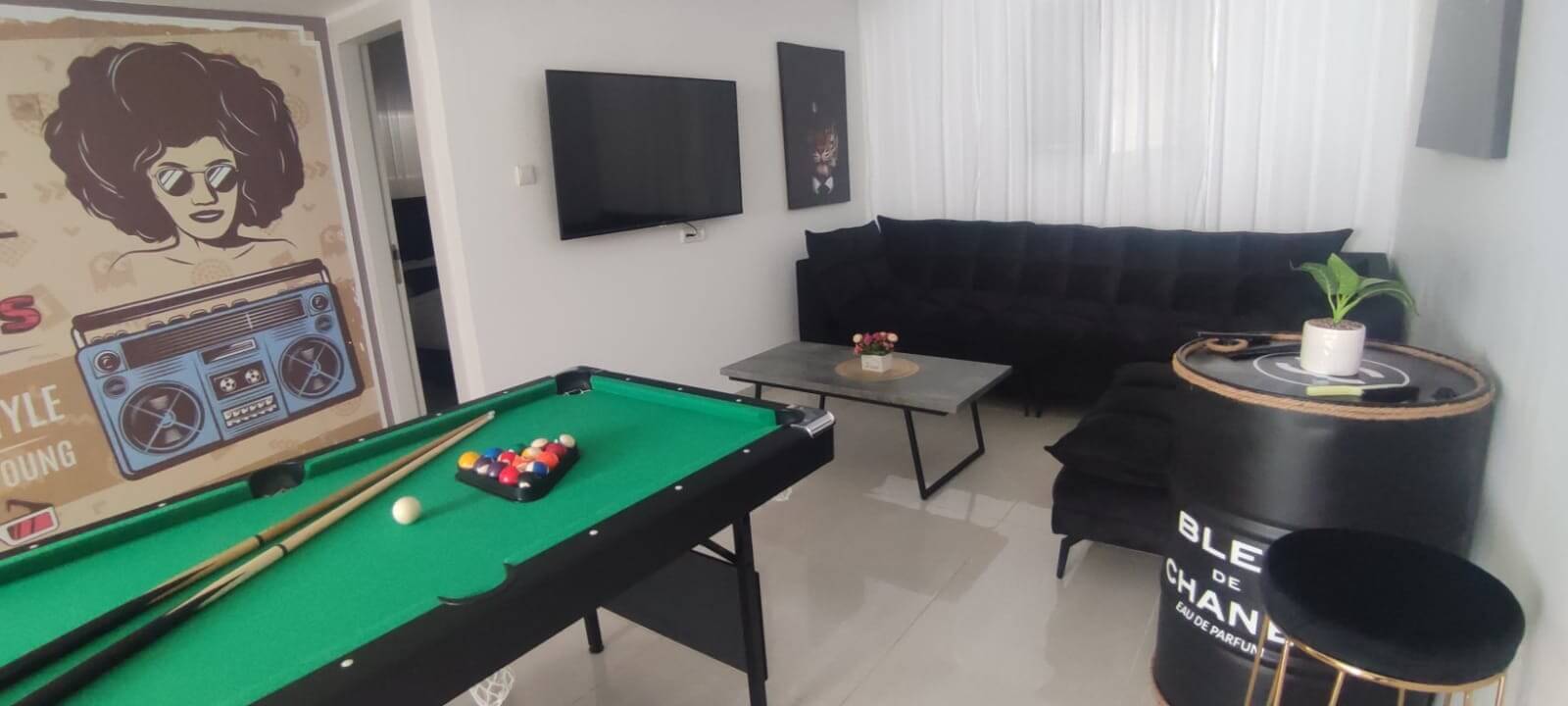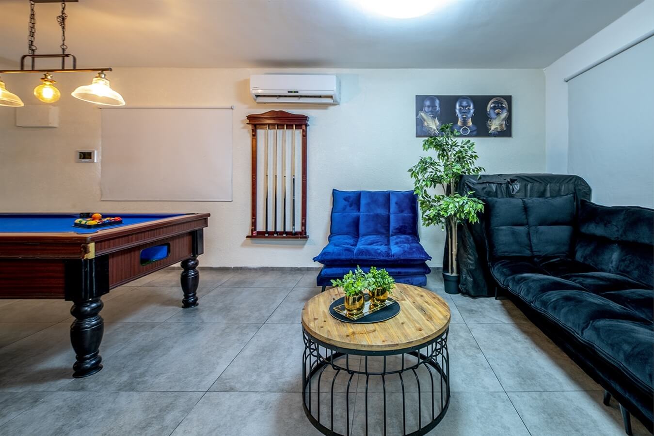 - סלון עם פינת ישיבה, שולחן סנוקר וטלוויזיה בחיבור לנטפליקס + הוט