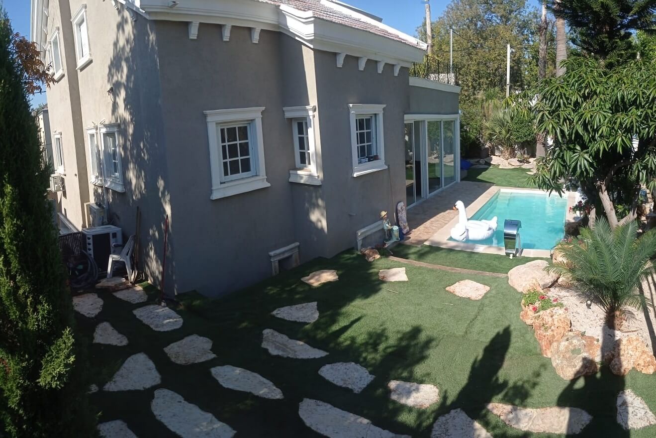 בחצר הוילה תיהנו מבריכה מרעננת בגודל 8X4 (מחוממת בעונת החורף עם ג'קוזי זרמים מובנה), פינת מנגל גז מאובזרת, פינות ישיבה, שולחן אוכל, שולחן פינג-פונג, עצי נוי, מדשאה ירוקה, פינות חמד ותאורת לילה.