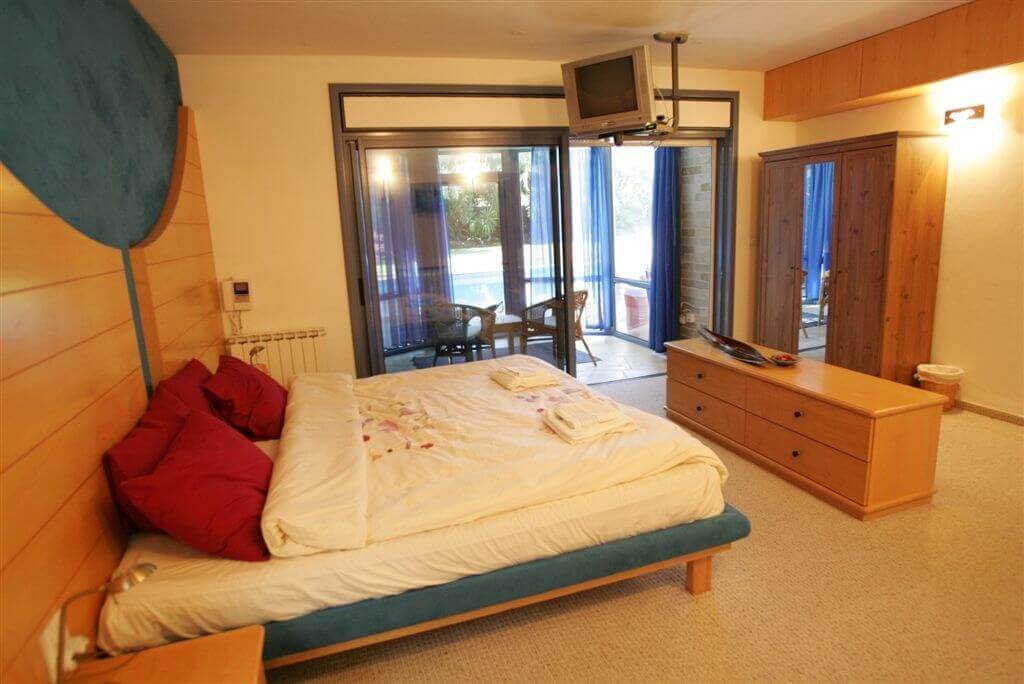 בוילה חדרי שינה זוגיים, שתי סוויטות המעוצבות בסגנון מודרני וחדר קבוצתי עם מיטות קומתיים ללינת ילדים. לכל סוויטה חדר רחצה צמוד.
