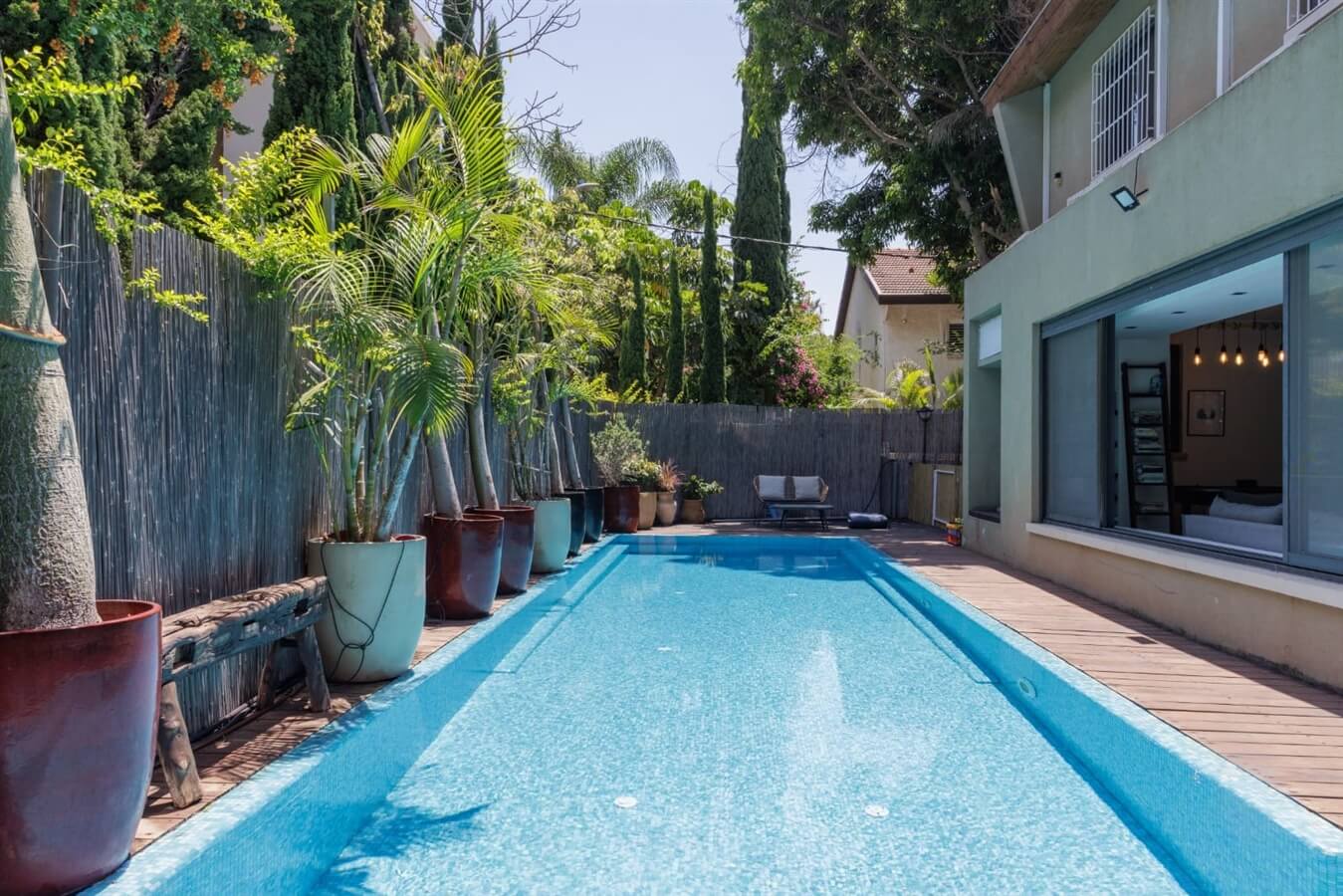 - בריכה מגודרת באורך 14 מטר עם הפרדה למים רדודים וגדר בטיחות
