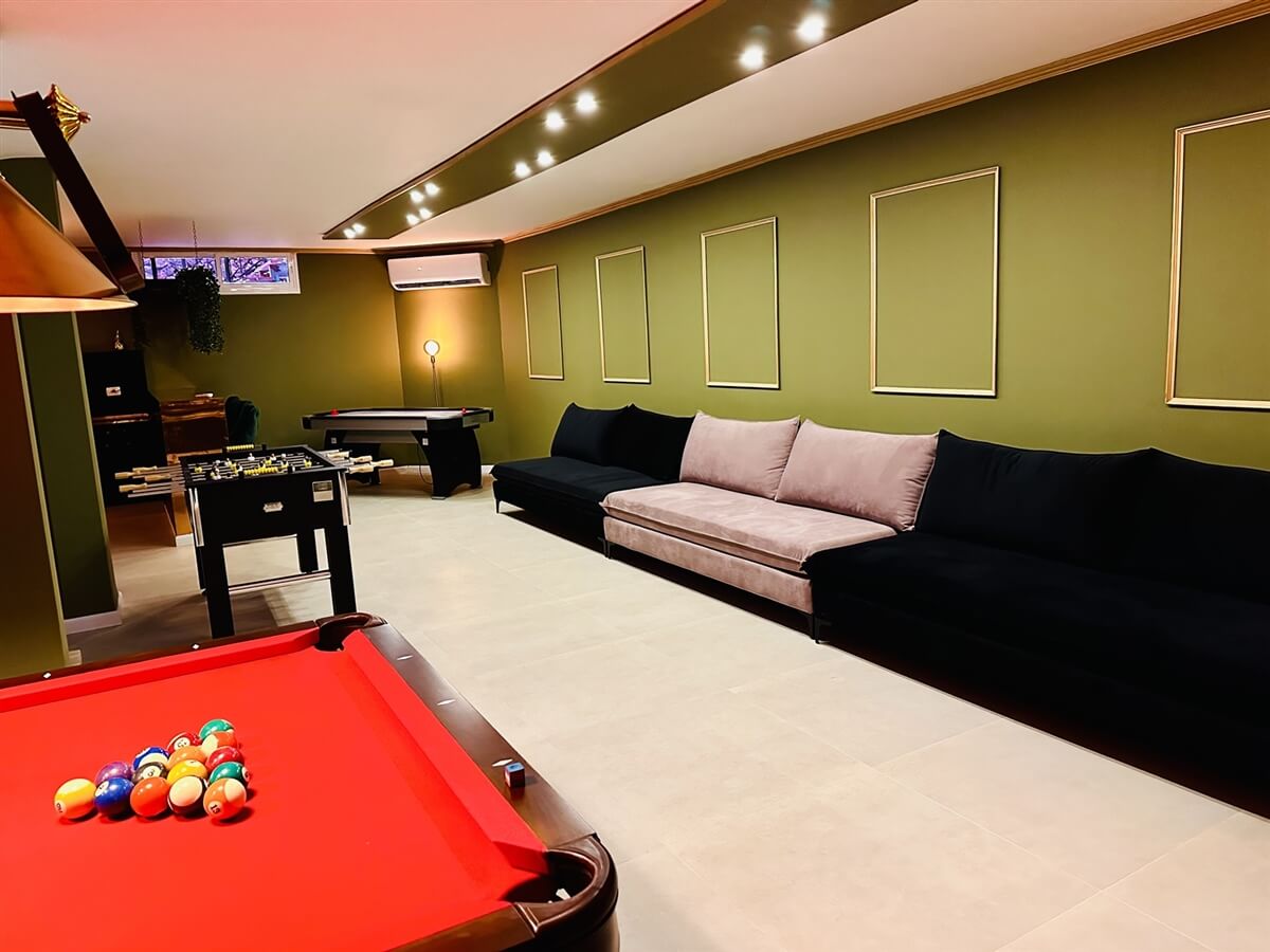 - חדר משחקים גדול ומאובזר הכולל פינת ישיבה גדולה, טלוויזיה חכמה עם PS (פליי סטיישן), עמדת בר מאובזרת, שולחנות ביליארד, הוקי אוויר וכדורגל