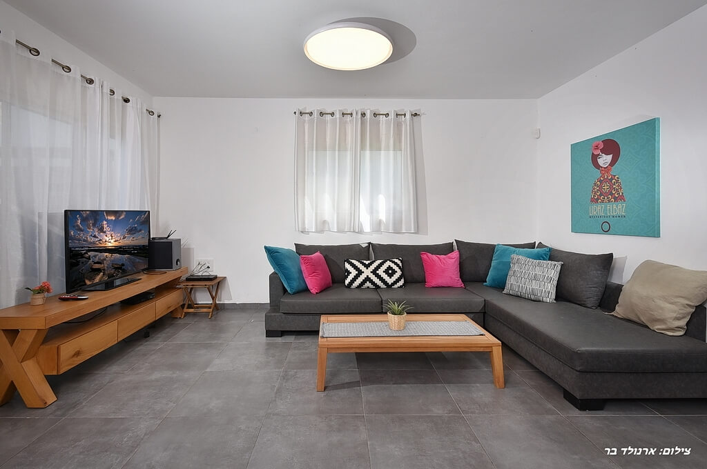 - סלון מרווח עם מסך טלוויזיה בגודל 50' עם dvd וחיבור לכבלים