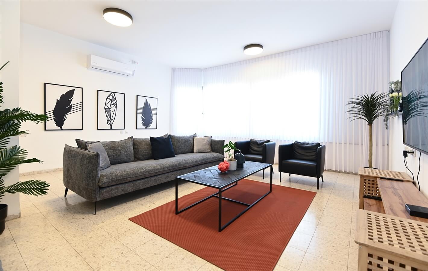 - סלון מרווח בכל קומה עם ספה הנפתחת למיטה זוגית וטלוויזיה חכמה המחוברת לערוצי כבלים ונטפליקס