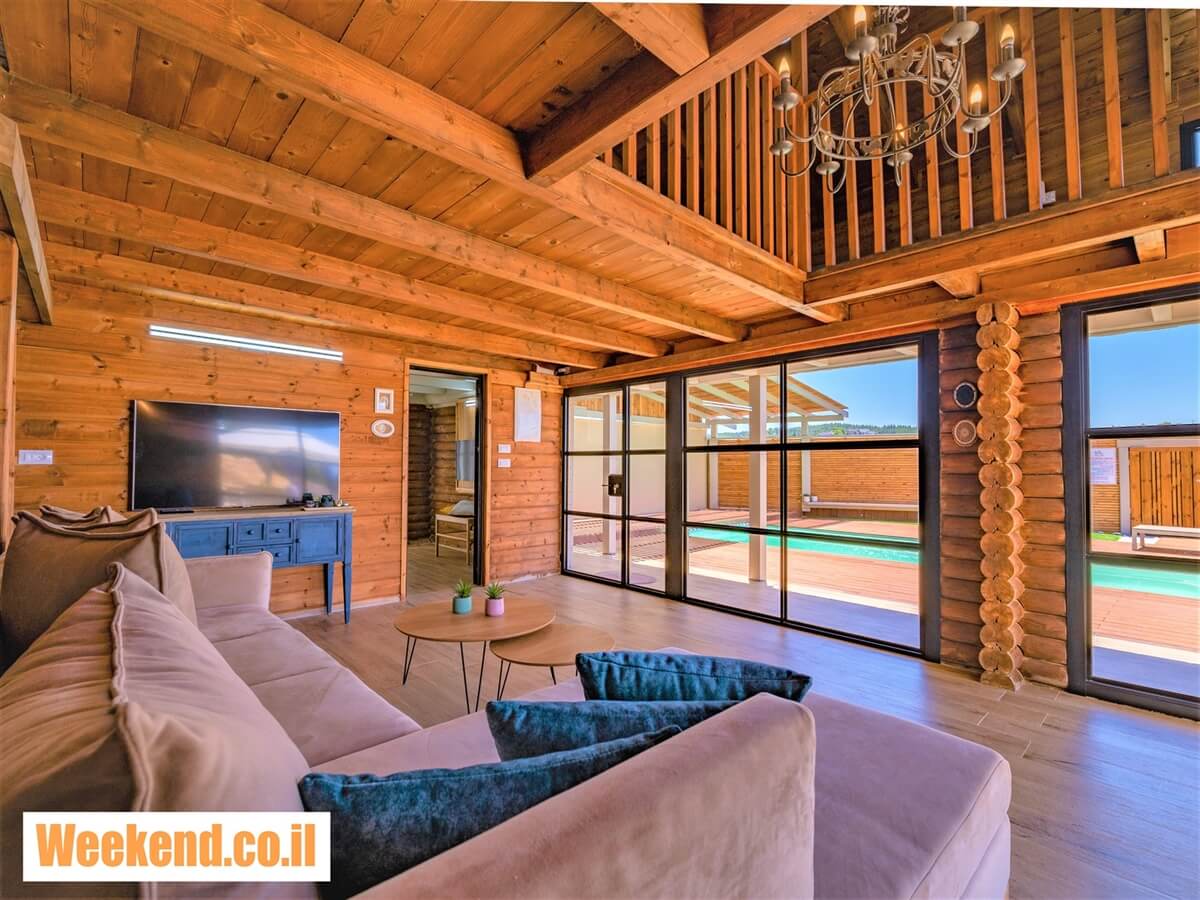 - וילת עץ מעוצבת בשילוב אבני בריק עם 4 חדרי שינה