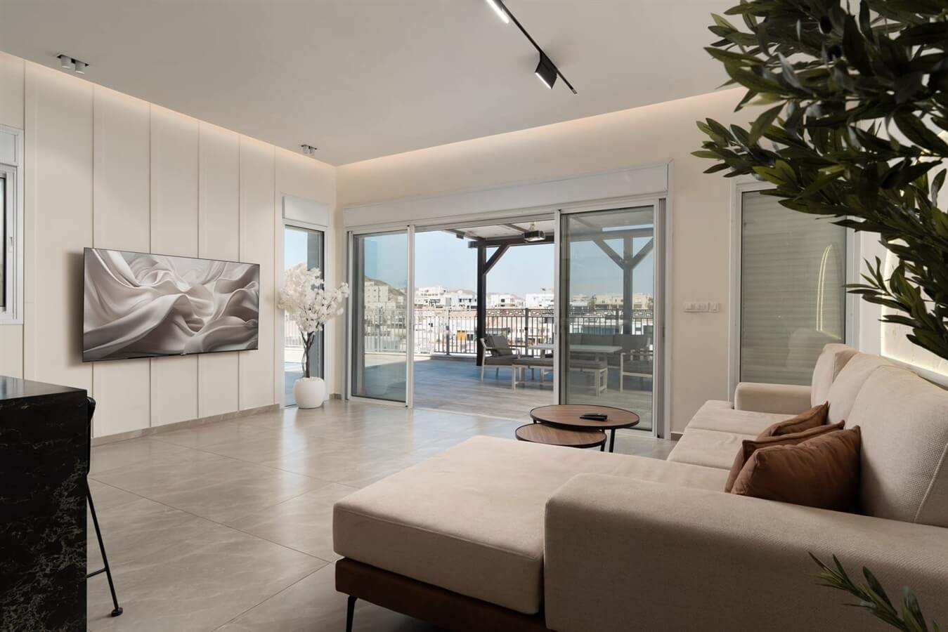 - 5 חדרי שינה עם מיטה זוגית נוחה, שידות וטלוויזיה חכמה
