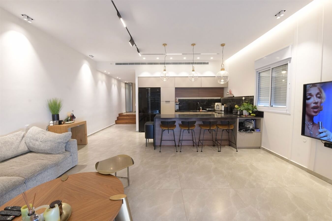 - סלון: ספה, שולחן סלון, טלוויזיה חכמה, מערכת קריוקי, נטפליקס, סוני, פלייסשטיין, מקרן ורמקולים מובנים