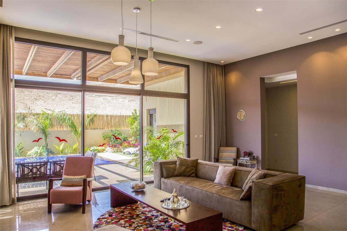 הוילה יושבת למרגלות הרי תמנע האדומים וצופה אליהם. אין כמו לצאת אל החצר ולשבת מול נוף מרגיע ושלו ולהרגיש באמת בחופש.
