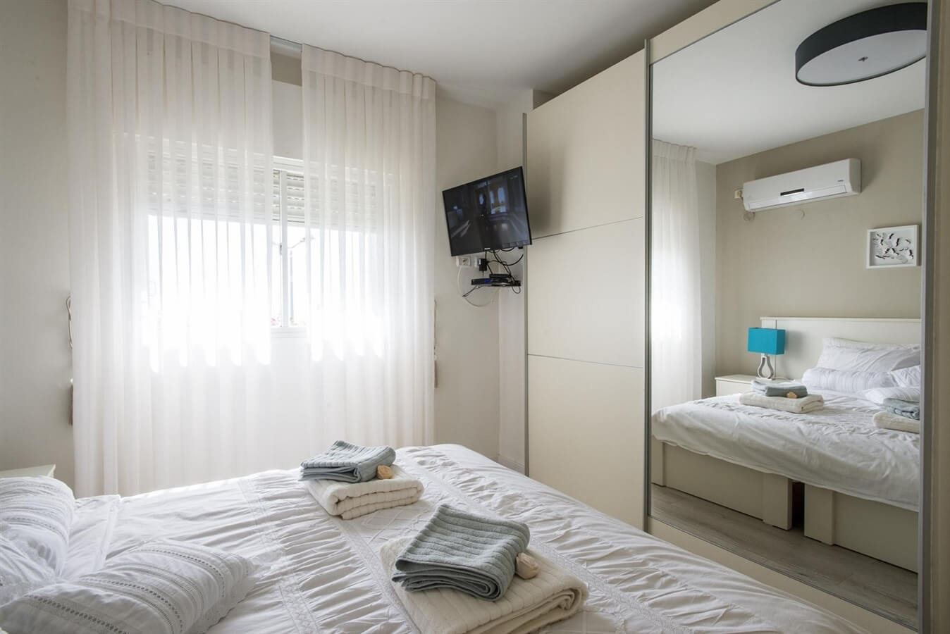בכל אחד מחדרי השינה מיטה זוגית וטלוויזיה lcd עם חיבור לכבלים. בחלק מחדרי השינה המיטות הזוגיות ניתנות להפרדה למיטות יחיד.