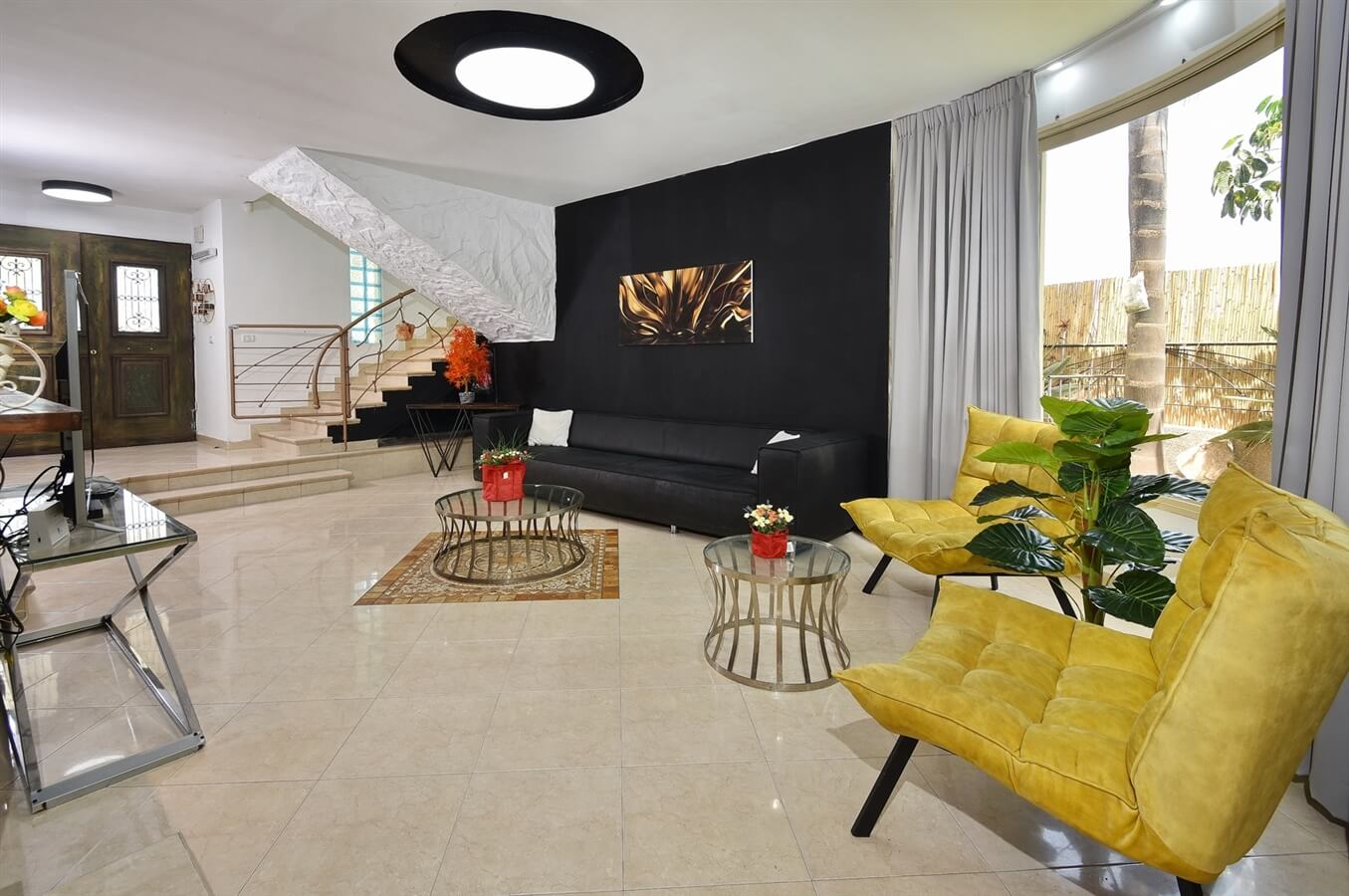 - סלון גדול עם פינת ישיבה רחבה ונוחה, מסך טלוויזיה בחיבור ללווין ויציאה אל החצר המקסימה