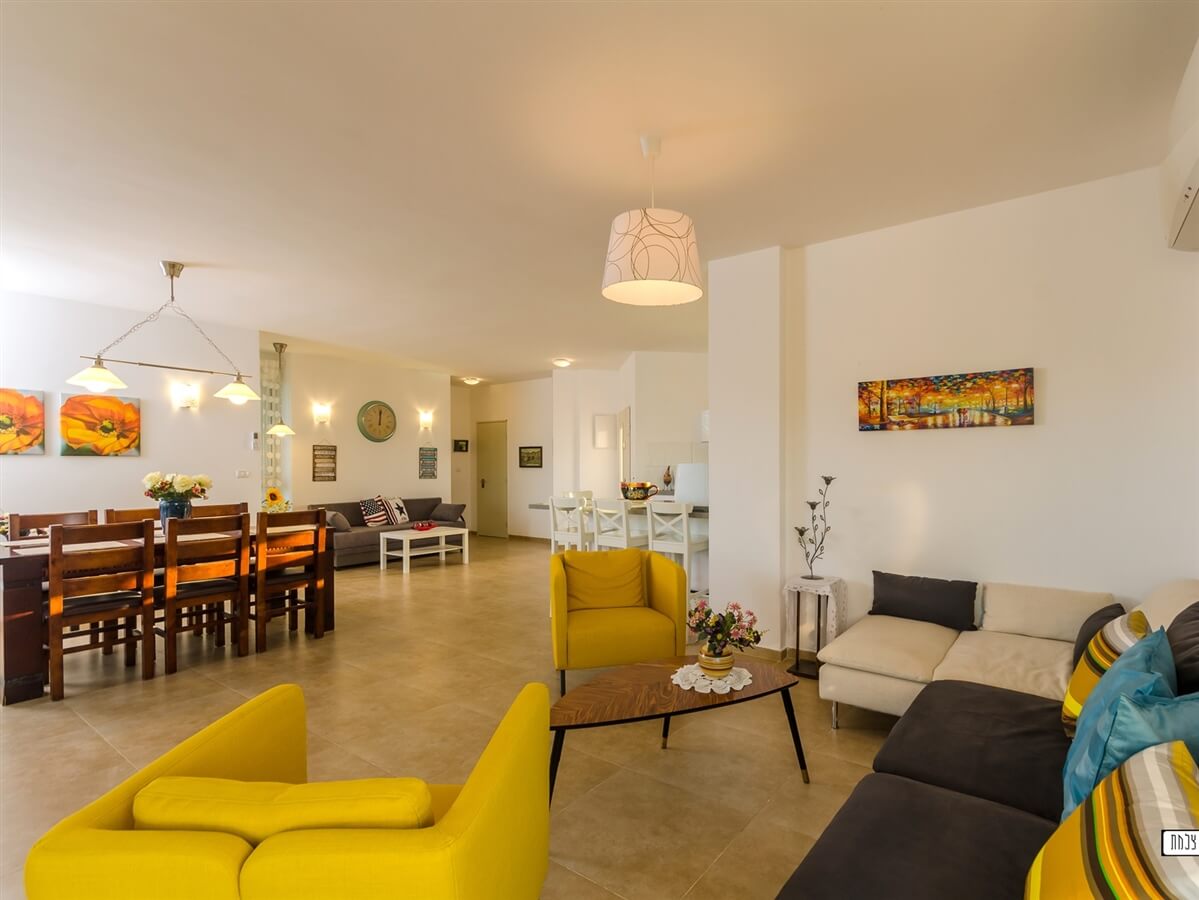 בלב הוילה חלל משותף בעיצוב עדכני ומוקפד ובו סלון יוקרתי, פינות ישיבה, מסך צפייה ענק, פינת אוכל משפחתית ל-30 איש ומטבח מאובזר עם תנור אפיה, מיקרוגל, מקרר, פינת קפה ותה, כלי הגשה וכיריים.